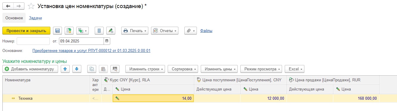 Заказчик обратился с требованием создать новый вид цены для техники, который будет зависеть от курса CNY. Курс должен обновляться вручную раз в неделю, а актуальный курс CNY, используемый для других расчетов, оставаться неизменным. Сложность данной задачи заключается в том, что 1С автоматически пересчитывает курс по актуальному значению, и цена поступления формируется именно на основе этого актуального курса. Поэтому необходимо найти способ обойти эту автоматическую логику.
