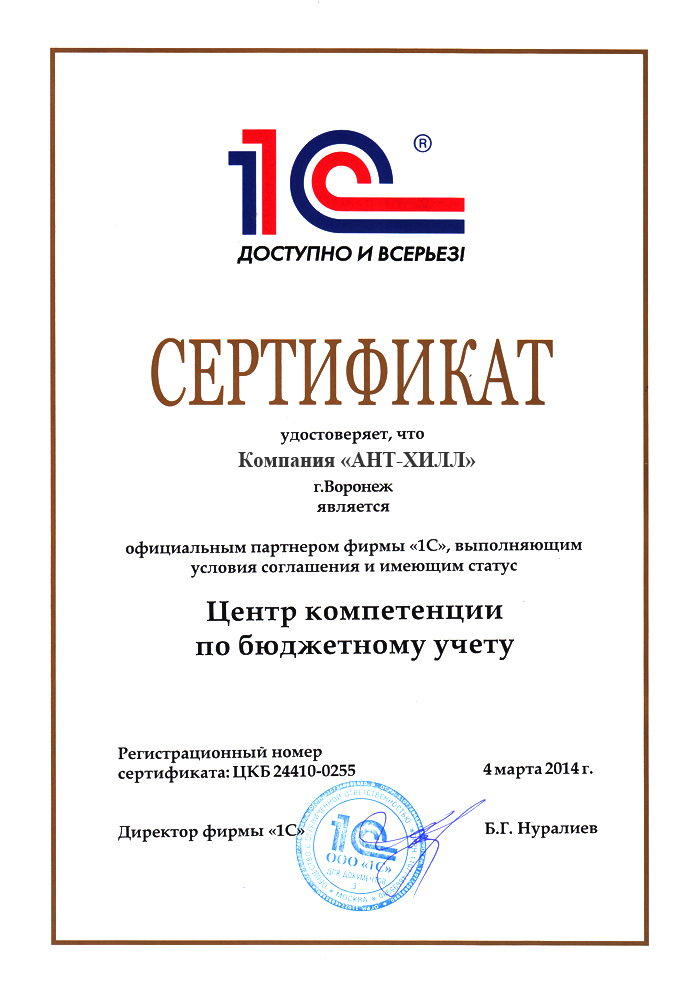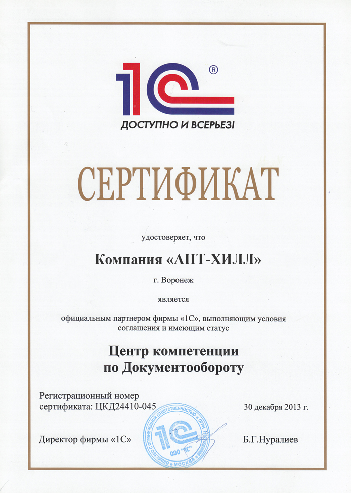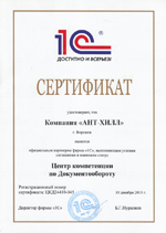 Компания "АНТ-ХИЛЛ" имеет в своем составе специалистов, аттестованных фирмой "1С", что гарантирует Вам: