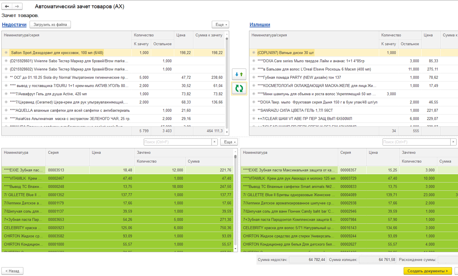 - Реализована обработка выгрузки и загрузки Заказов поставщику через файл Excel. При загрузке реализована возможность сравнения цен, количества и ассортимента с тем, что было заказано у поставщика изначально и что прислал поставщик в ответ во избежание расхождений по ценам, незапланированного изменения стоимости и т.д. (чтобы не сравнивать руками).